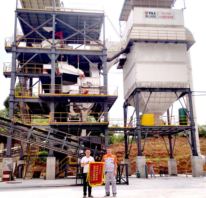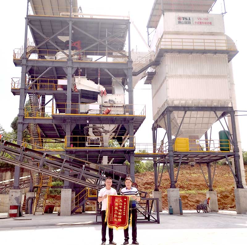 天馬建筑是一家現(xiàn)代化綠色環(huán)保型生產(chǎn)企業(yè),該公司專業(yè)生產(chǎn)商品混凝土。高度重視產(chǎn)品的質(zhì)量,以“質(zhì)量第一,服務(wù)至上”為企業(yè)宗旨,現(xiàn)需擴建一條時產(chǎn)150噸機制砂生產(chǎn)線。經(jīng)過多方考察、對比,最終選定了唐山金路的制砂生產(chǎn)線。唐山金路根據(jù)天馬建筑制砂原料和用砂需求,為天馬建筑量身定制的這套時產(chǎn)150噸的V9干法制砂生產(chǎn)線。項目投產(chǎn)近一個月以來,得到天馬建筑的高度認(rèn)可與好評,在項目實施階段,對我公司安裝人員的技術(shù),給予肯定與認(rèn)可,特送錦旗表示感謝。這錦旗不僅僅是榮譽的象征,更代表“天馬建筑”對于唐山金路全體工作人員的認(rèn)可,客戶的滿意就是我們前進的動力。